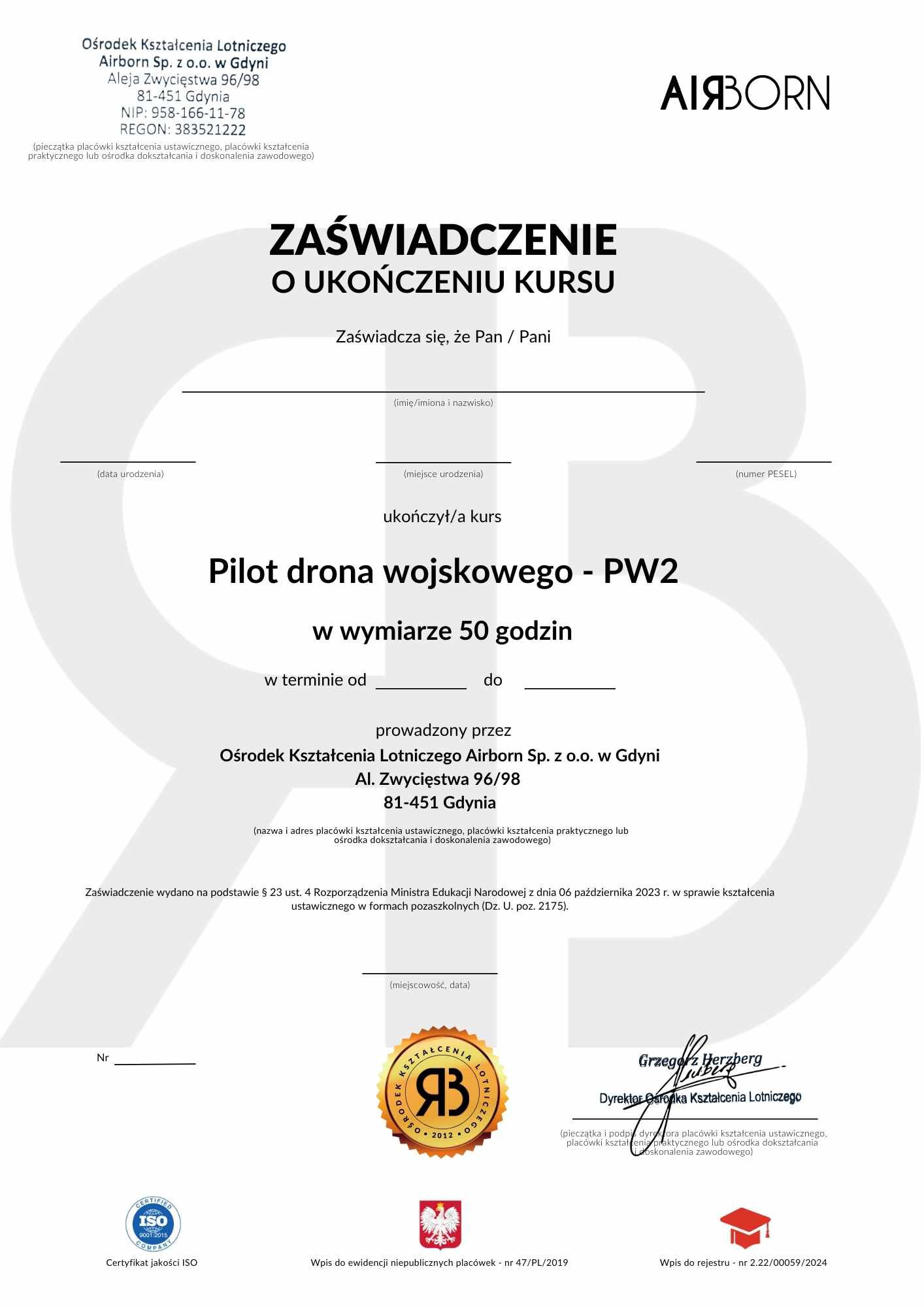 Certyfikat ukończenia kursu na pilota drona wojskowego